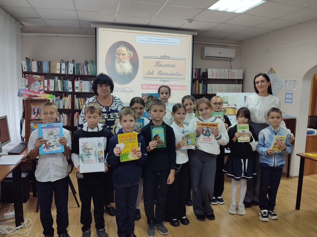 С большим интересом юные читатели узнавали об интересных фактах из жизни, о творчестве Толстого, участвовали в викторине по биографии и произведениям писателя, разгадывали загадки и посмотрели мультфильм «Филипок».
