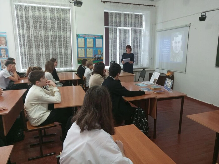 Октябрьская библиотека, филиал № 1 подготовила и провела для учащихся МБОУ СОШ № 7 в рамках всероссийского межведомственного культурно-образовательного проекта Минкультуры России и Минпросвещения России «Культура для школьников» поэтическую минутку «Подвиг во имя Родины».