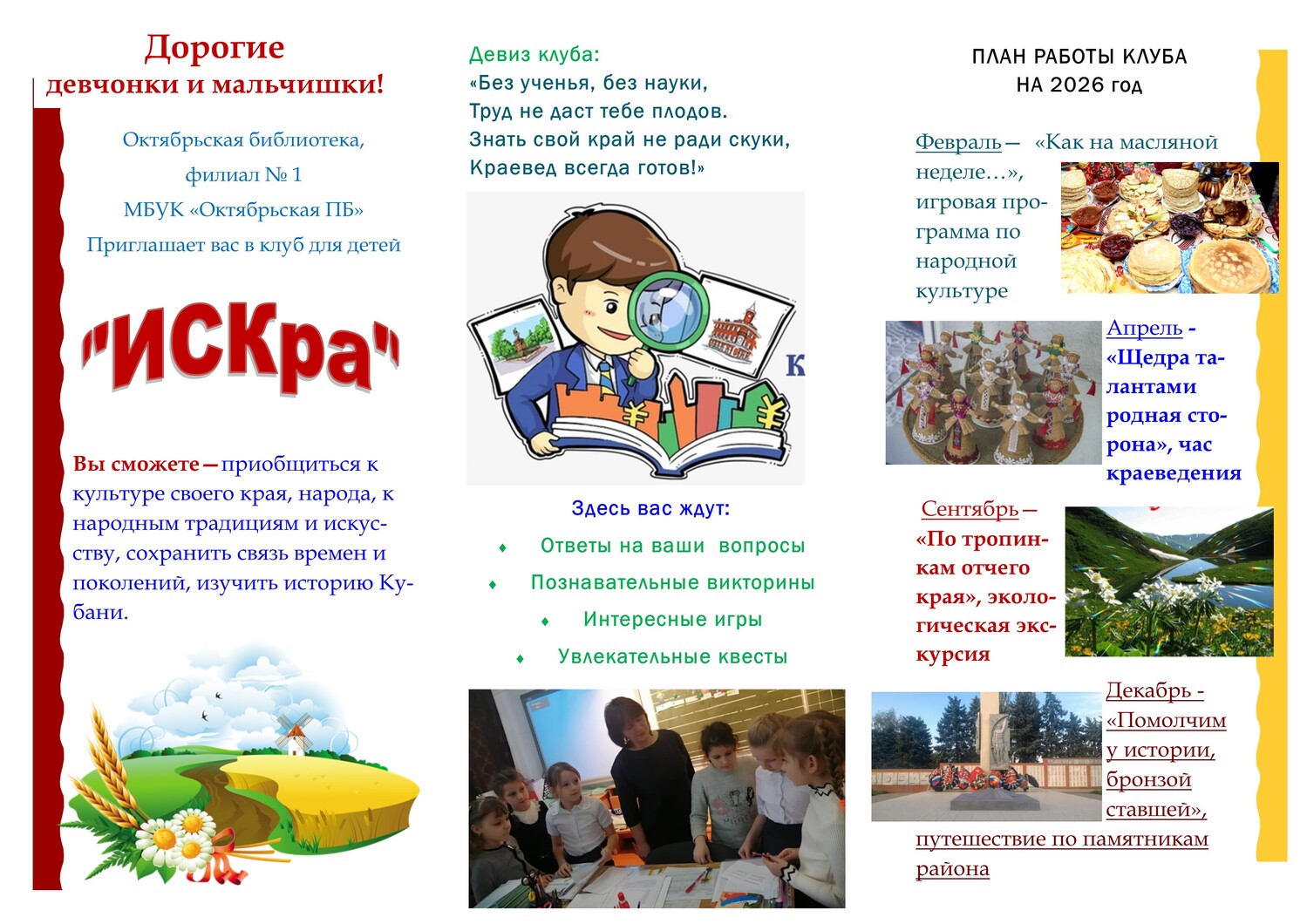 Буклет клуба "ИСКРА" 2026 г.